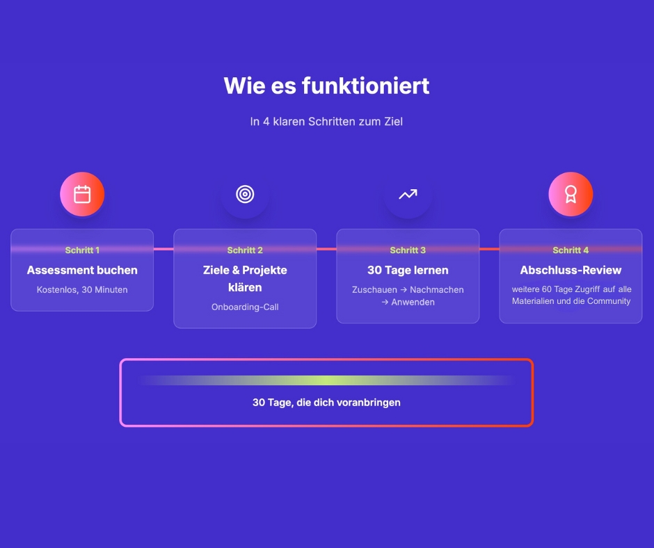 Was uns besonders wichtig ist: Du wirst Teil einer unterstützenden Community! Vernetze dich mit Gleichgesinnten - ob es hakt oder besoders gut läuft. Es macht Spaß, gut orientiert und effektiv zu sein - und dieses Gefühl mit anderen zu teilen.
