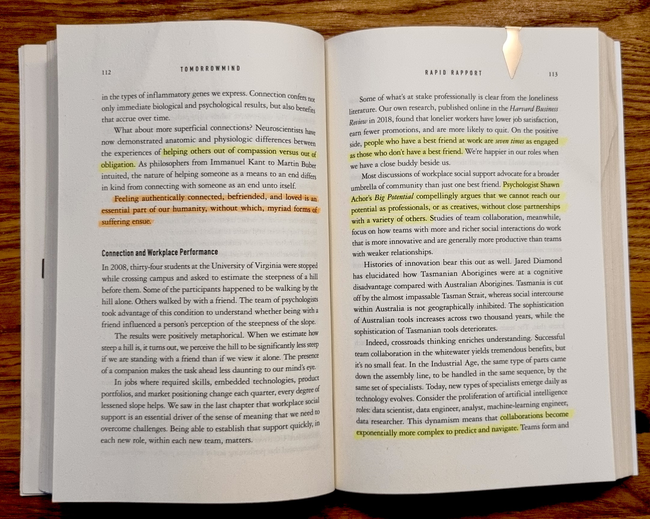 Schneller Rapport: Empathie und Verbundenheit sind die Basis für erfolgreiche Zusammenarbeit. "Tomorrowmind" bietet Ansätze, um schnell und effektiv vertrauensvolle Beziehungen aufzubauen (den Rapid Rapport) – für Changemaker quasi unverzichtbar, denn was können wir schon alleine bewirken? Wohlbefinden und Produktivität sind dabei untrennbar verbunden.